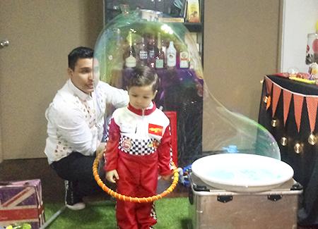 Sorprendente espectáculo de Burbujas, gigantes, con humo y múltiples. Más lluvia de burbujas y encapsulamiento, todo lo realizamos como un cuenta cuentos.